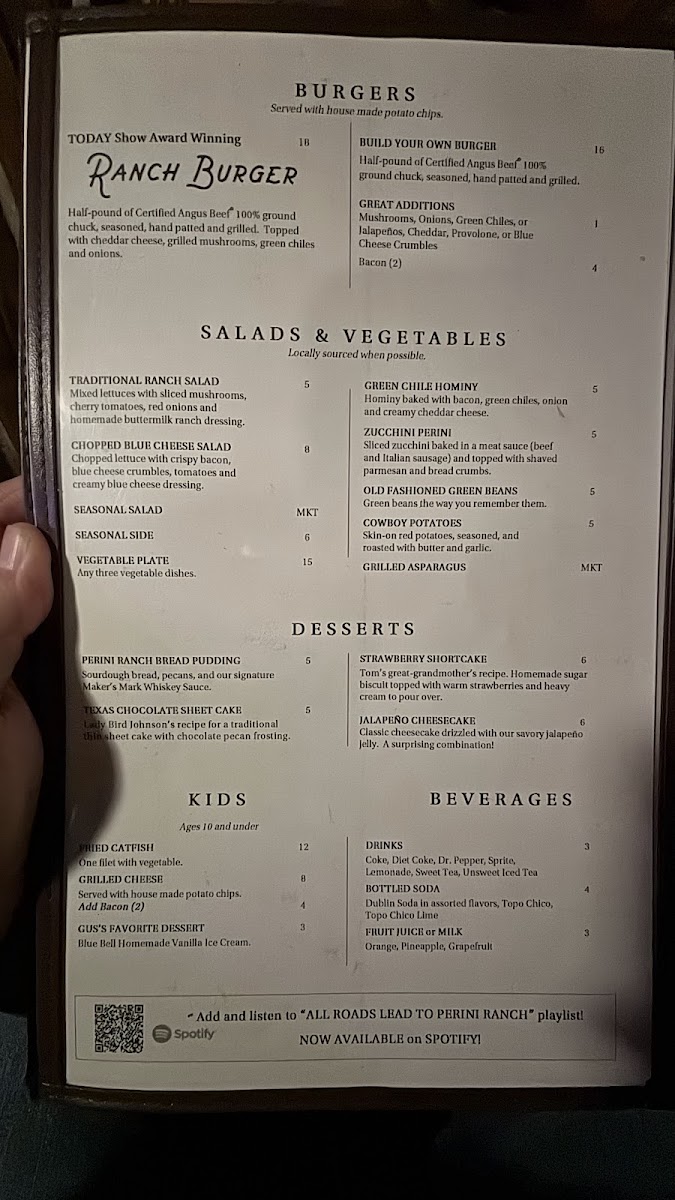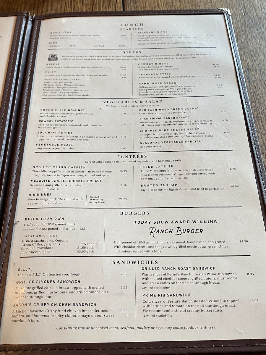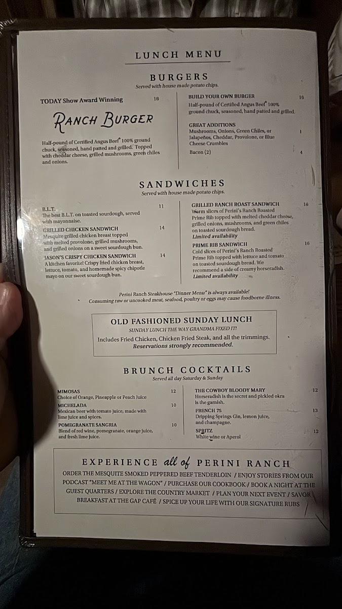 Indulge in the well-marbled Ribeye or the lean Filet, both aged to perfection and seasoned with Perini Ranch's special rub. For burger lovers, the Today Show Award-Winning Ranch Burger is a must-try, topped with grilled mushrooms and cheddar. The cozy atmosphere complements the attentive service, creating a perfect setting to savor each delicious bite. Experience the warmth and flavors of Texas at Perini Ranch Steakhouse, where every dish tells a story of quality and passion.